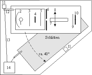 Aufsicht auf die Apparatur - der schwenkbare Schlitten